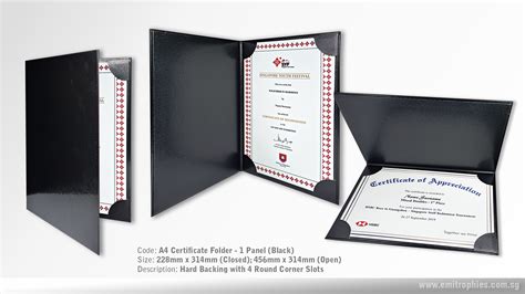 Using certificate folders has many benefits. First, it keeps your certificates and documents organized and easy to access. Second, it protects your certificates from damage, such as tearing, folding, or getting wet. Third, it enhances the presentation of your certificates, making them look more professional and impressive.