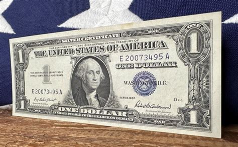 The 1957 1 dollar silver certificate is similar in design to the 1935 version, but it has a blue seal and serial numbers. These certificates were also redeemable for silver until 1964. The value of a 1957 1 dollar silver certificate can range from a few dollars to over $100, depending on its condition and rarity.