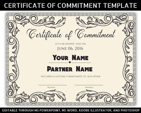 Here is a sample certificate template that can be used to recognize commitment: